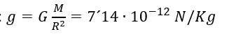 donde M es la masa que se encuentra dentro de los límites de la superficie de Gauss y r es la distancia del punto del cual queremos calcular el valor de la gravedad al centro de masas.